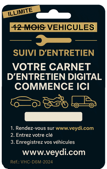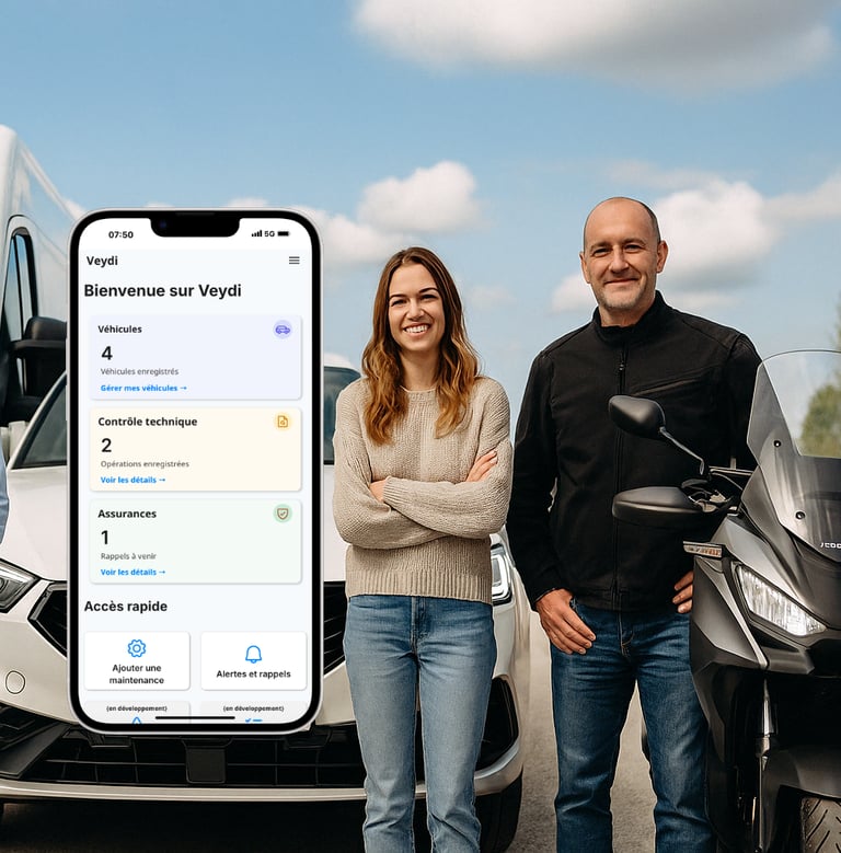 Découvrez Veydi, votre solution moderne pour le suivi d'entretien de véhicules, qu'il s'agisse de voitures, motos ou flottes professionnelles. Simplifiez la gestion de votre mobilité.